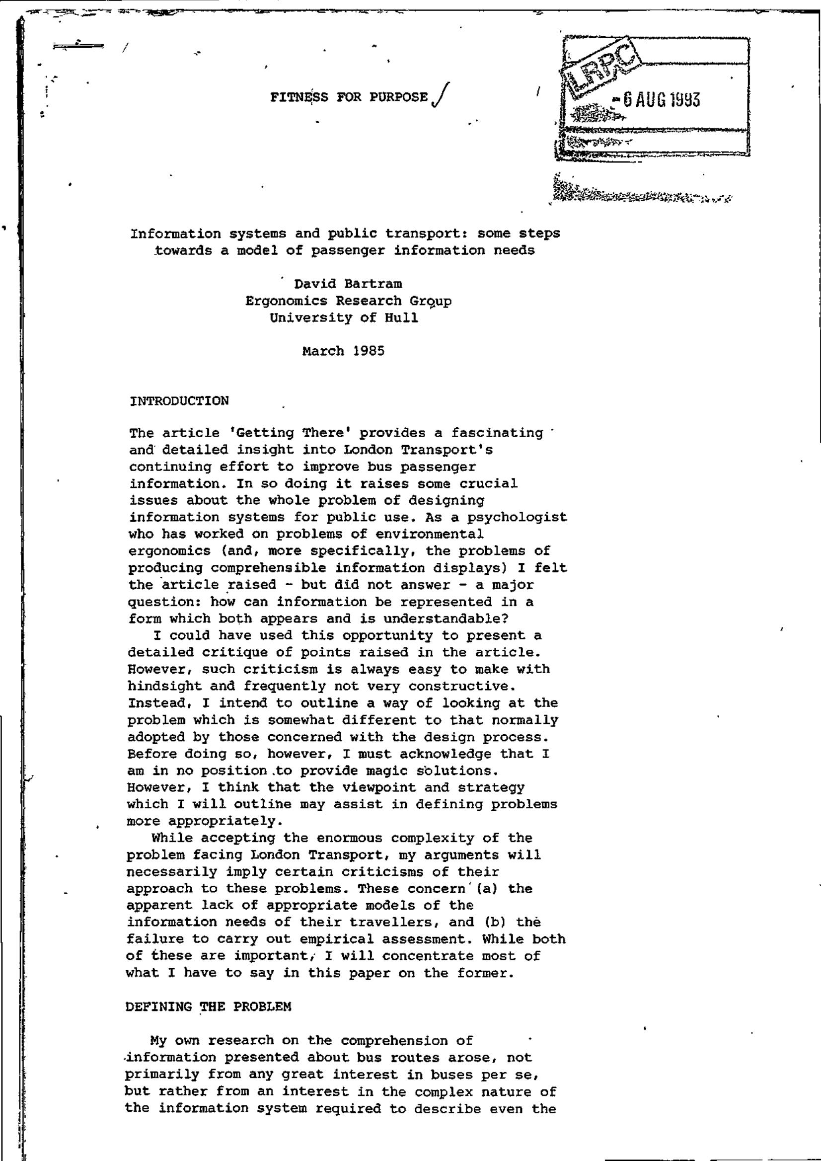 Bartram – FITNESS FOR PURPOSE 1983