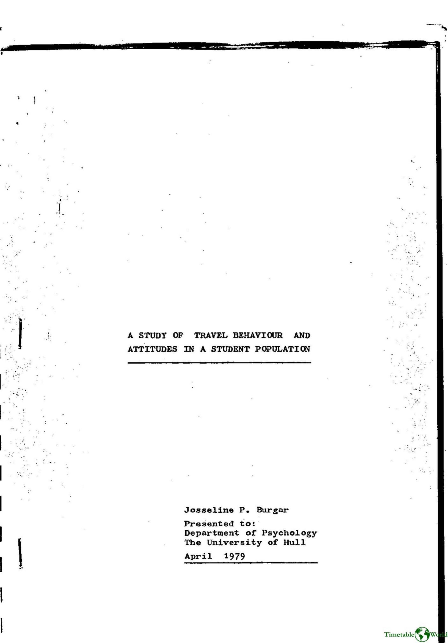Burgar – A STUDY OF TRAVEL BEHAVIOUR AND ATTITUDES IN A STUDENT POPULATION 1979