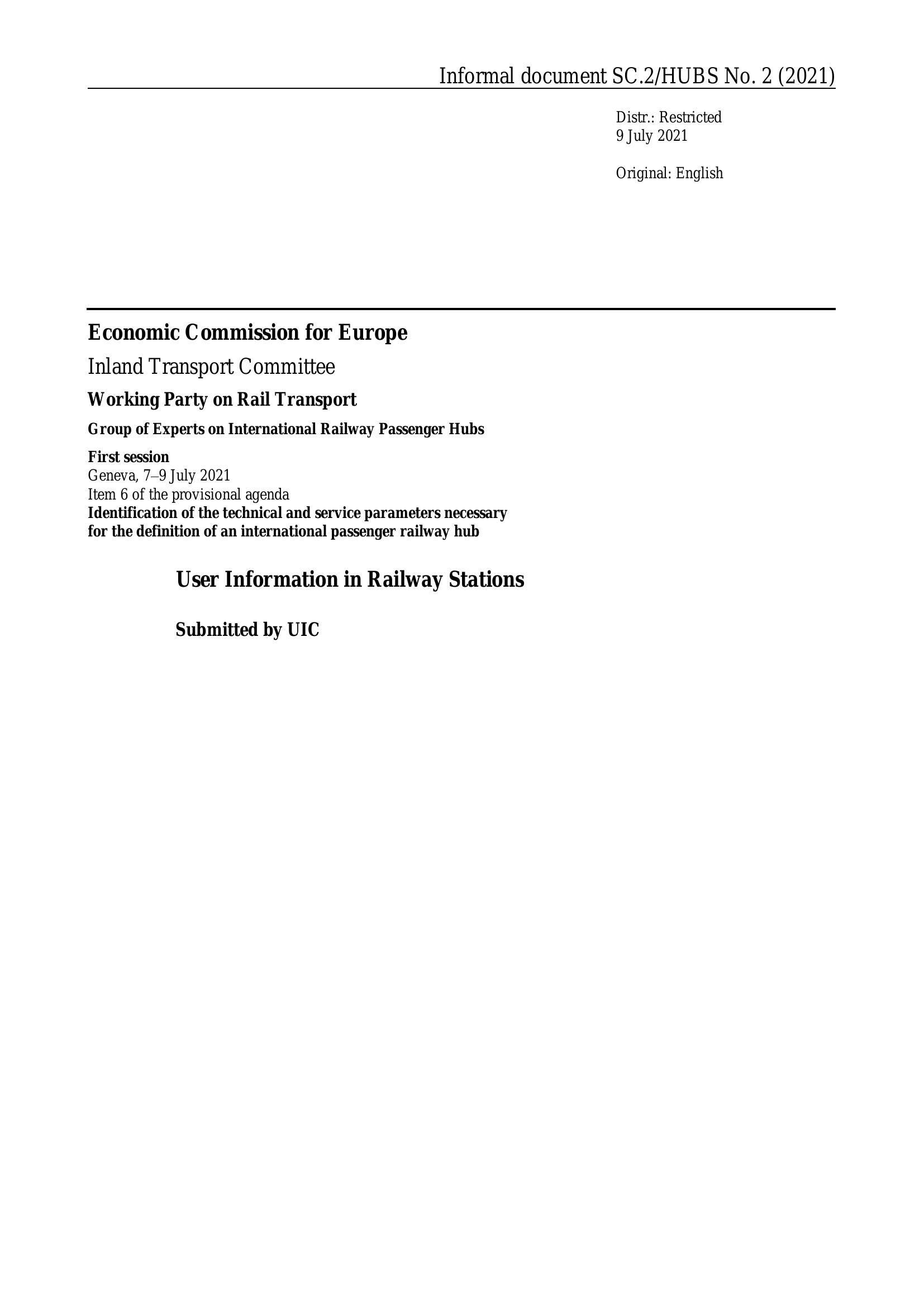 International Union of Railways (UIC) – USER INFORMATION IN RAILWAY STATIONS 2018