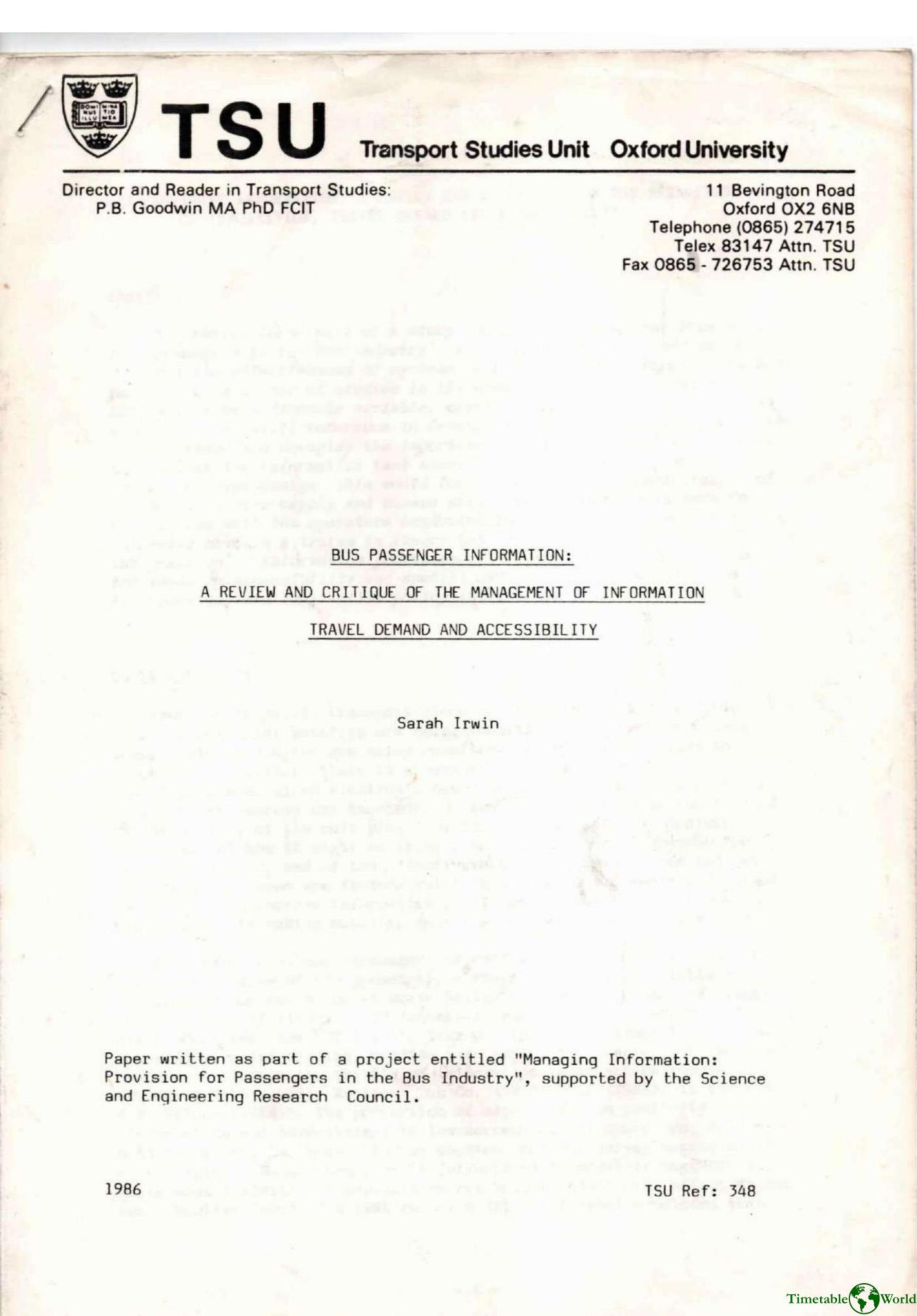 Irwin – BUS PASSENGER INFORMATION 1986