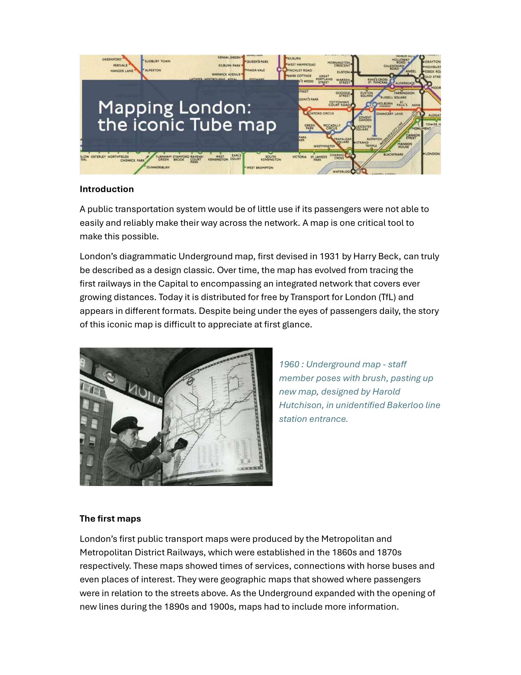 London Transport Museum – MAPPING LONDON – THE ICONIC TUBE MAP 2025
