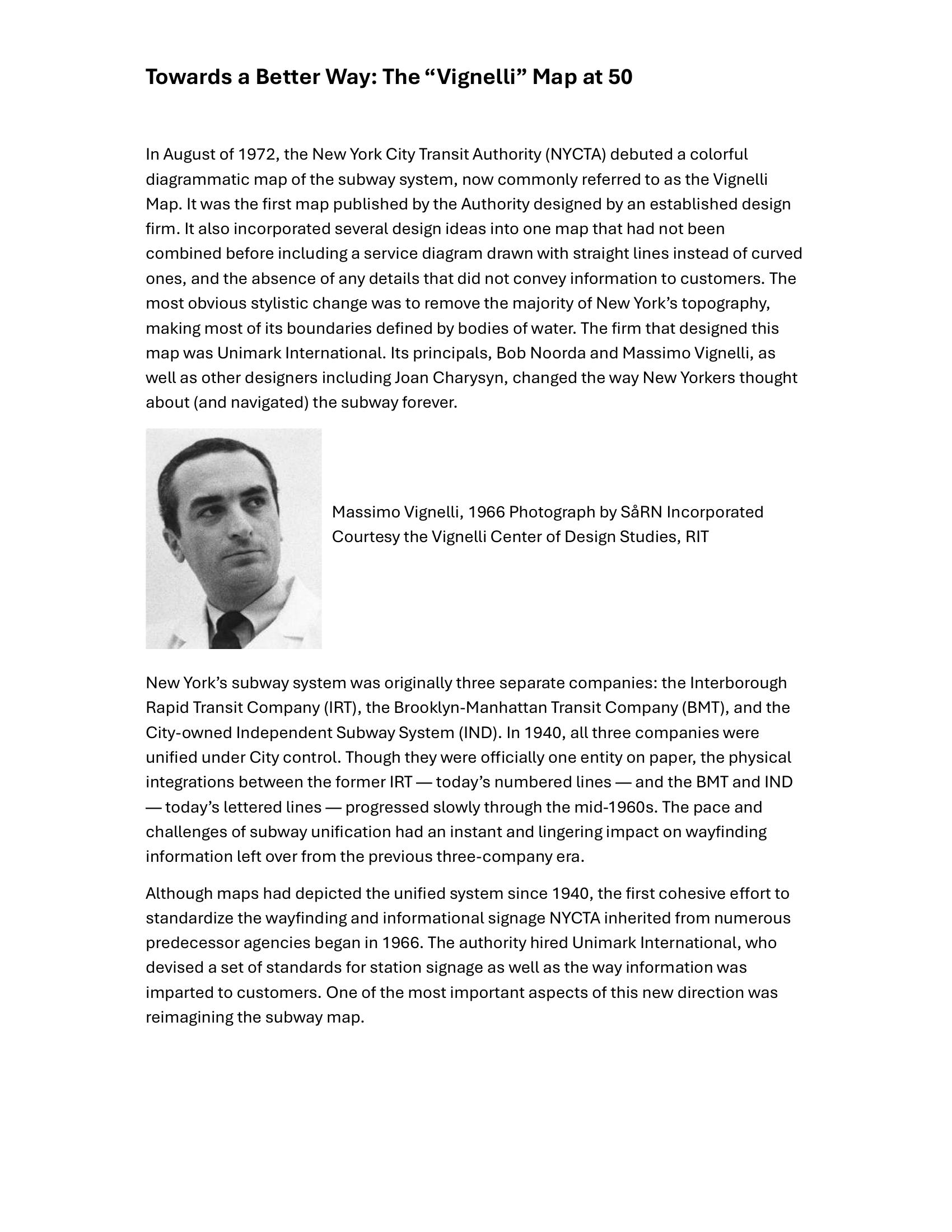New York Transit Museum – TOWARDS A BETTER WAY – THE VIGNELLI MAP AT 50 2022