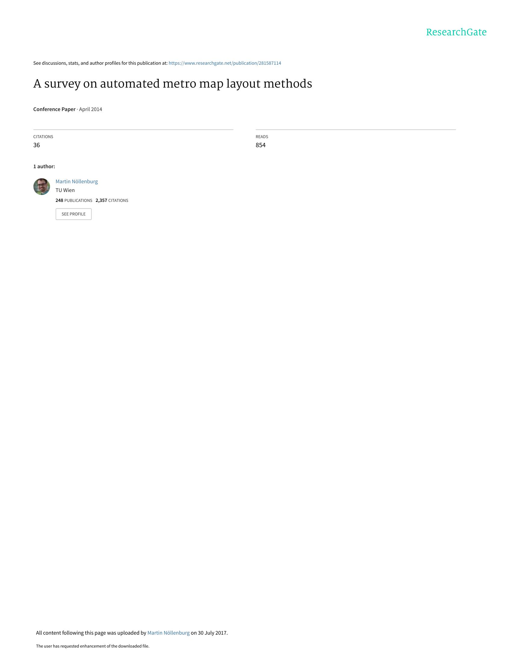 Nöllenburg – A SURVEY ON AUTOMATED METRO MAP LAYOUT METHODS 2014