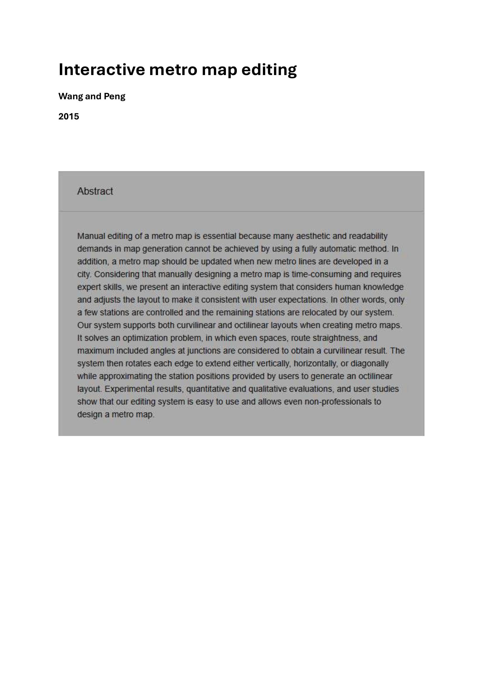 Wang and Peng – INTERACTIVE METRO MAP EDITING 2015